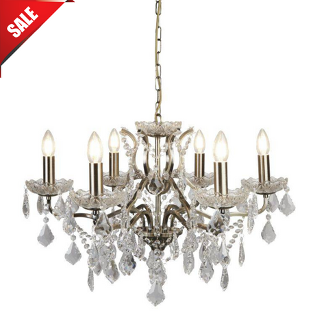 Searchlight 6 Light Chandelier Crystal Drops Trim Brass