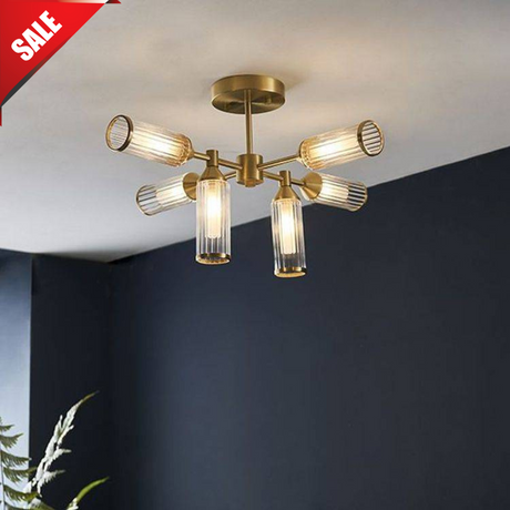 Regular price £433.00 Sale price £130.09Unit price /UnavailableAvon 6Lt Semi-flush Ceiling Light Satin Brass Plate With Clear & Frosted Glass