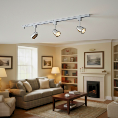 Track & Spot Pack- 3 Silver Heads, 1m Track, 2 Way Connector