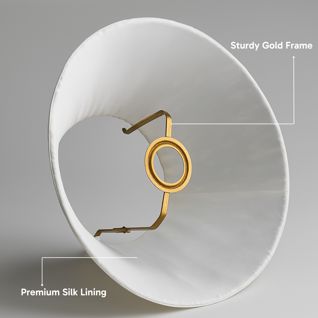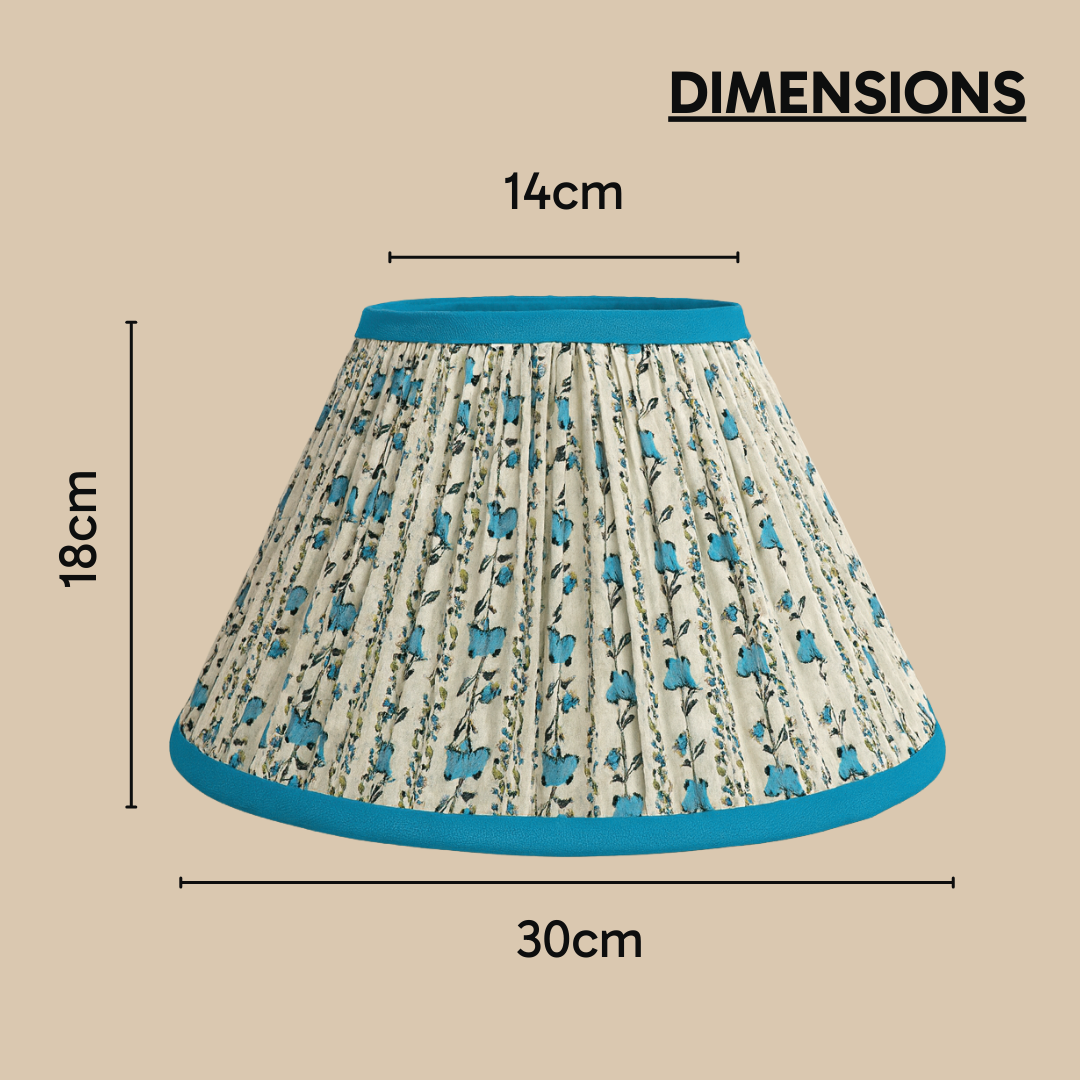 The Blue Willow empire lampshade brings soft charm with its dainty light blue blooms printed on crisp cotton. It’s a gathered shade, which means there’s texture and movement in every fold. Lined with silk for that glowy finish. Built on a metal frame so it stays neat. Made in Jaipur by skilled artisans who know their craft.