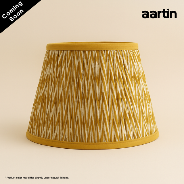 Bright, bold, and full of spirit — this handcrafted lampshade invites the liveliness and spirit of Jaipur, India, right into your home. The bright yellow chevron pattern is created with great care by skilled artisans on the best quality cotton. The straight empire silhouette is made even more attractive by hand gathering the fabric for texture and flow.