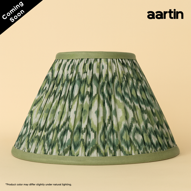 AARTIN 30 CM GREEN & WHITE IKAT EMPIRE GATHERED LAMPSHADE IN COTTON is backordered and will ship as soon as it is back in stock.