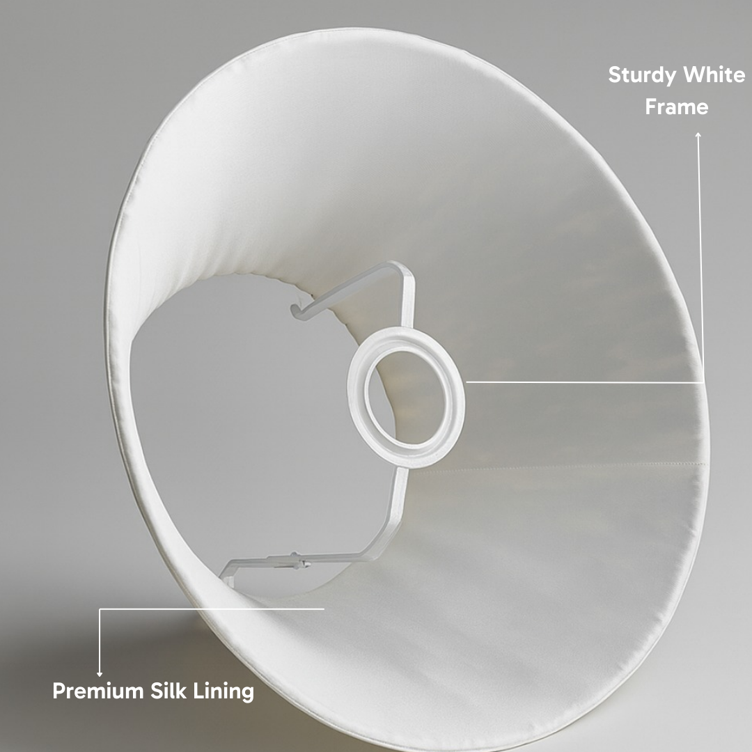 Midnight Lotus is for those who like their florals graphic and their lighting sharp. Hand block printed in Jaipur, this empire lampshade features dark pink lotus motifs popping against deep navy cotton. The gathered silhouette adds a soft texture, while the silk lining throws a warm, luxe glow. It’s built on a sturdy metal frame, so it holds its shape — no fuss.