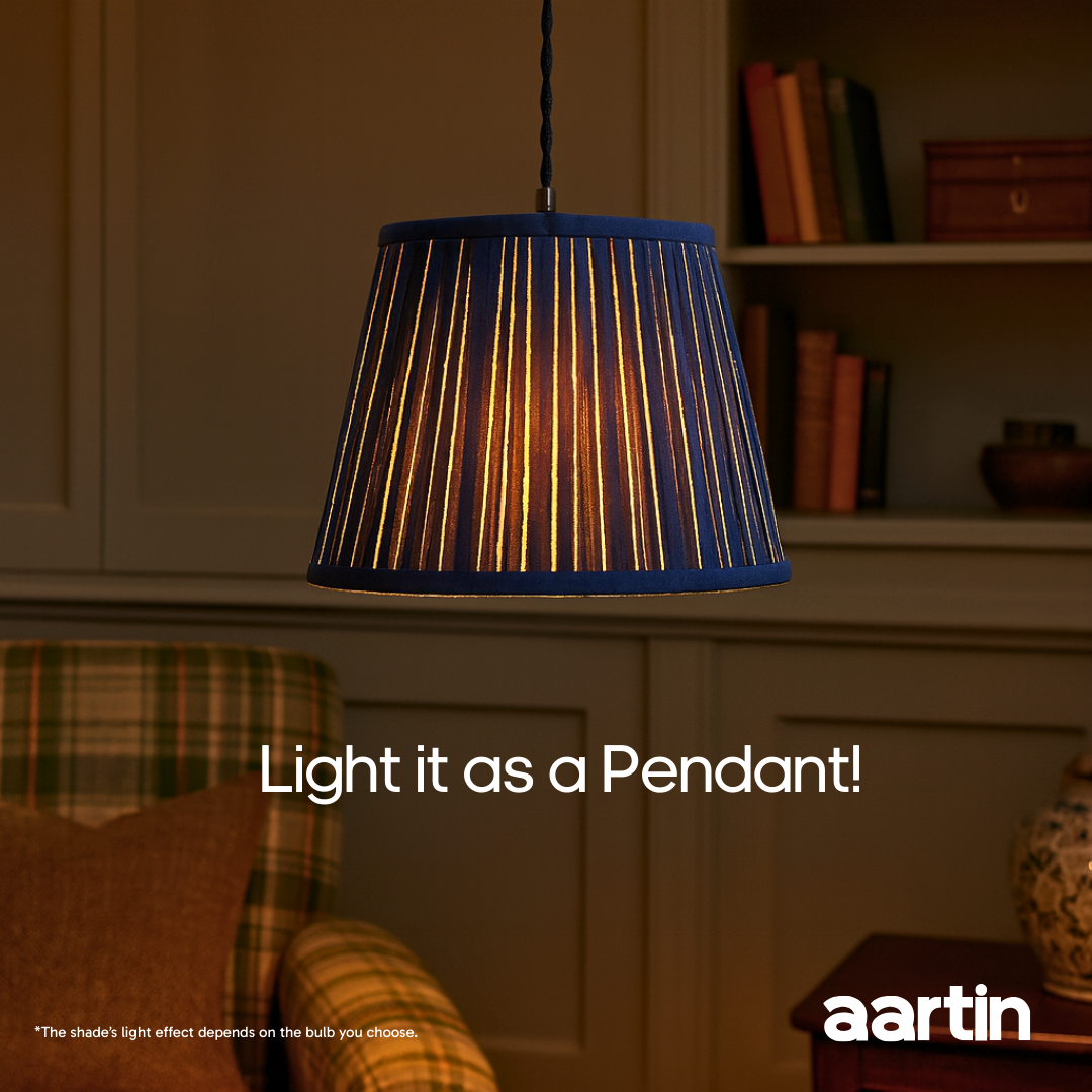 Lined with silk for a welcoming glow, it’s made in Jaipur by some of the finest artisans that you will ever come across. Pop it on a lamp or work it as a pendant, it fits right into coastal nooks, breezy bedrooms, and laid-back living rooms. Sail into style, one stripe at a time.