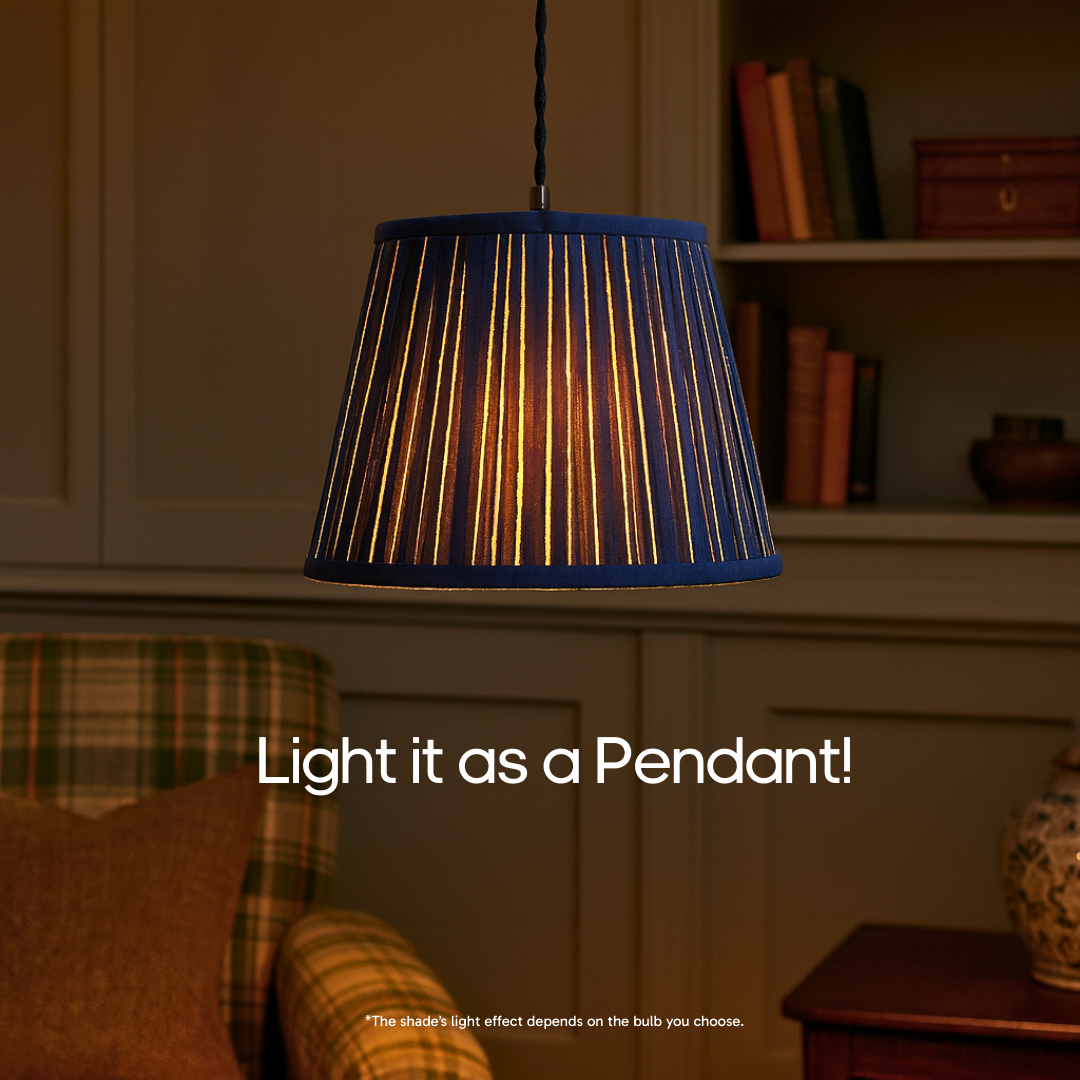 Lined with silk for a welcoming glow, it’s made in Jaipur by some of the finest artisans that you will ever come across. Pop it on a lamp or work it as a pendant, it fits right into coastal nooks, breezy bedrooms, and laid-back living rooms. Sail into style, one stripe at a time.