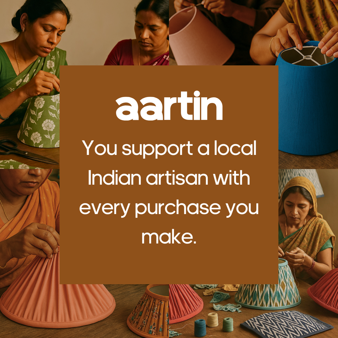 The lampshade is made from cotton and has a plush inner silk lining. And the best part - it brings Indian artistry into your home. Style it on a sleek table lamp or let it hang as a pendant for a sunny, modern vibe. Looks perfect in mid-century, eclectic, or retro-inspired spaces that love personality and character.