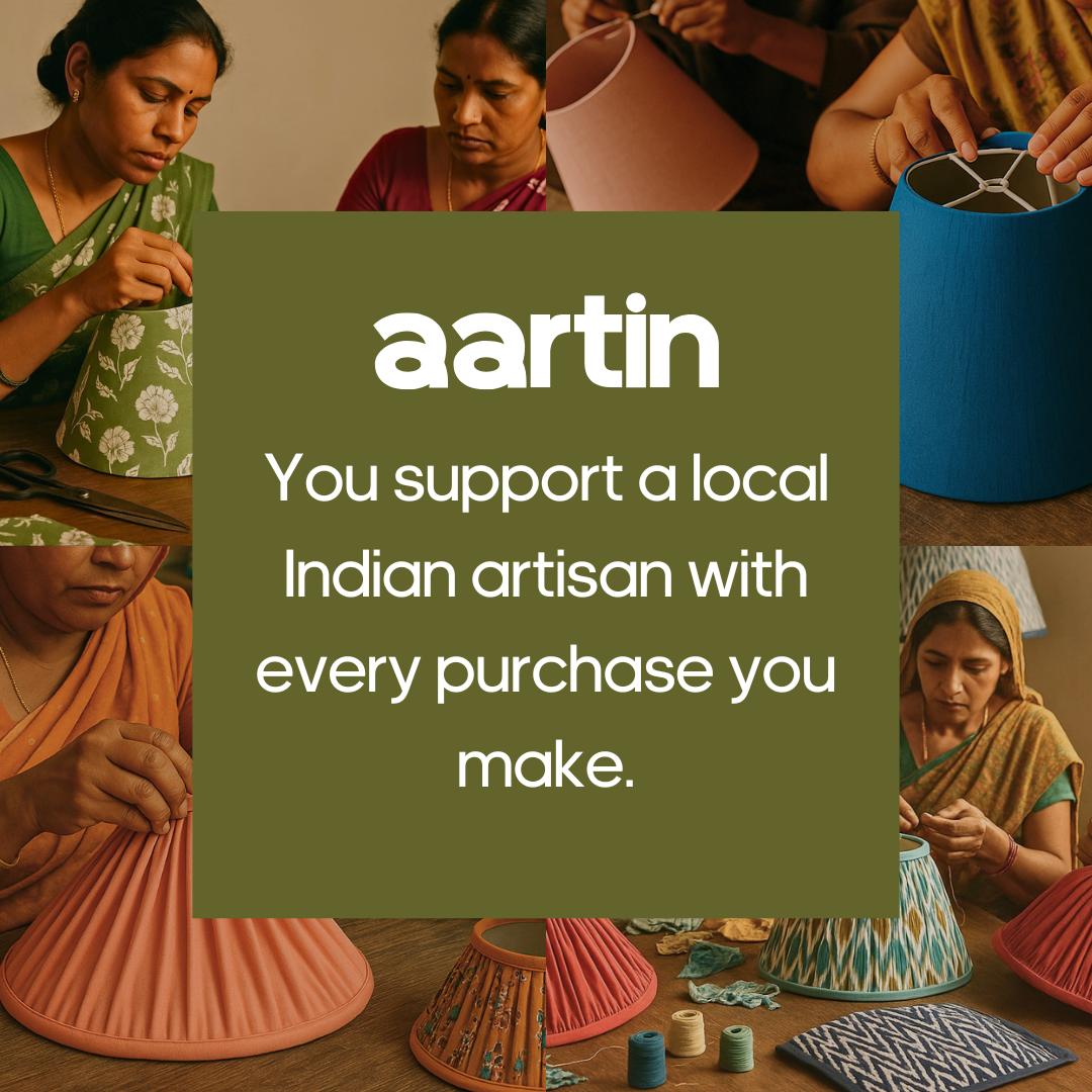 The cotton fabric stretched tightly on a metal frame keeps things grounded. And the goodness of silk-lined interior makes it quietly stylish. Use it on a table lamp for a subtle accent or hang it as a pendant for a clean, botanical vibe. Fits beautifully into earthy, cottage core spaces or minimalist nooks that crave a touch of nature.