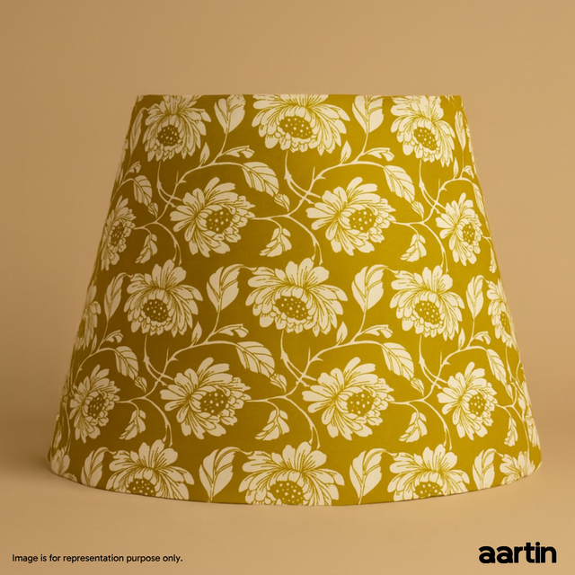 Meet the Golden Petals lampshade — cheerful, graceful, and full of sunshine. With creamy floral motifs blooming across a mustard-yellow cotton base, this shade is a winning combination of warmth and charm. The metal frame, rolled edges, and straight empire silhouette keep things neat and structured. The silk lining inside helps cast a soft, glowing light.