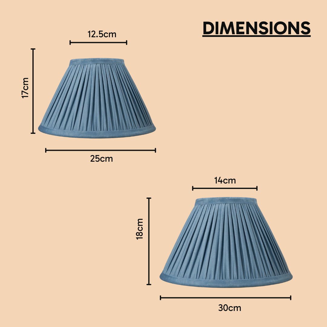 Soft pleats, serene style. This gathered empire lampshade in silk has a muted blue tone that oozes quiet elegance. It's made in India and built on a metal frame for a structured look. The luxe silk fabric and soft cotton lining bring a rich, rippling texture. Perfect for anyone chasing calm, airy vibes.
