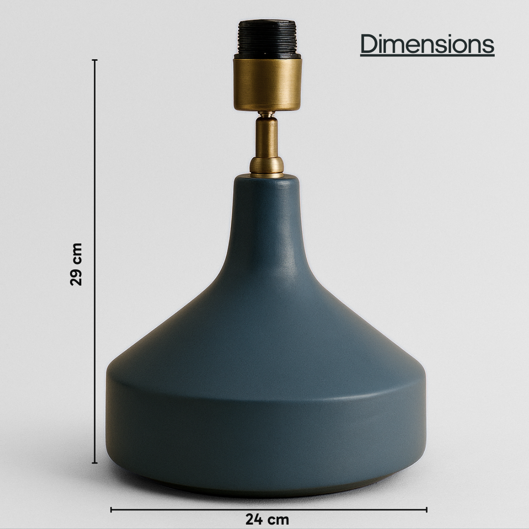 The Franklin table lamp has a bold, modern shape with a wide base and a gently narrowing top. This gives the lamp a clean, sculptural feel. Made from ceramic in a soft blue tone, its unglazed matte finish adds a raw, minimal charm. This piece fits perfectly into contemporary and creative interiors. For a fun and lively twist, pair it with a straight empire lampshade in orange, mustard, or yellow. A shade size between 30 to 35 cm will bring out its best glow.