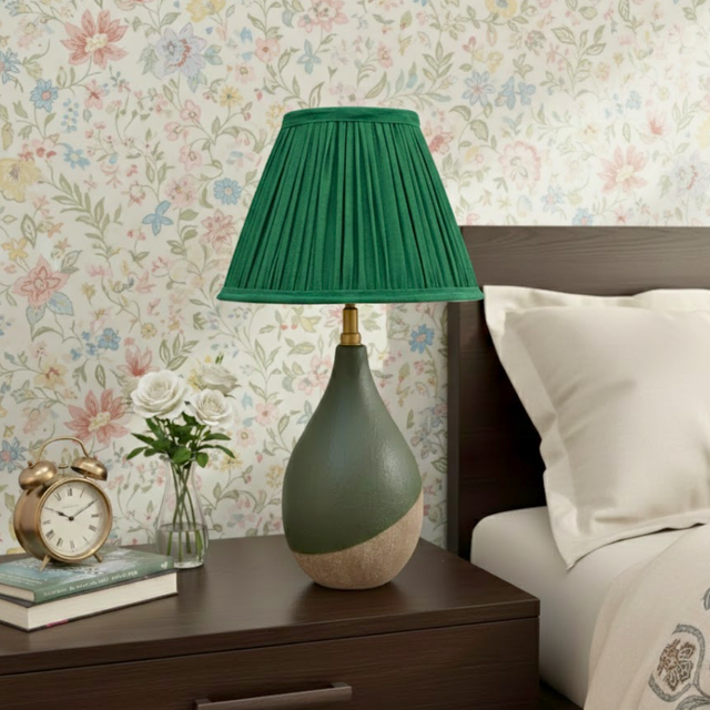 AARTIN Iris Ceramic Table Lamp With Green Silk Lampshade