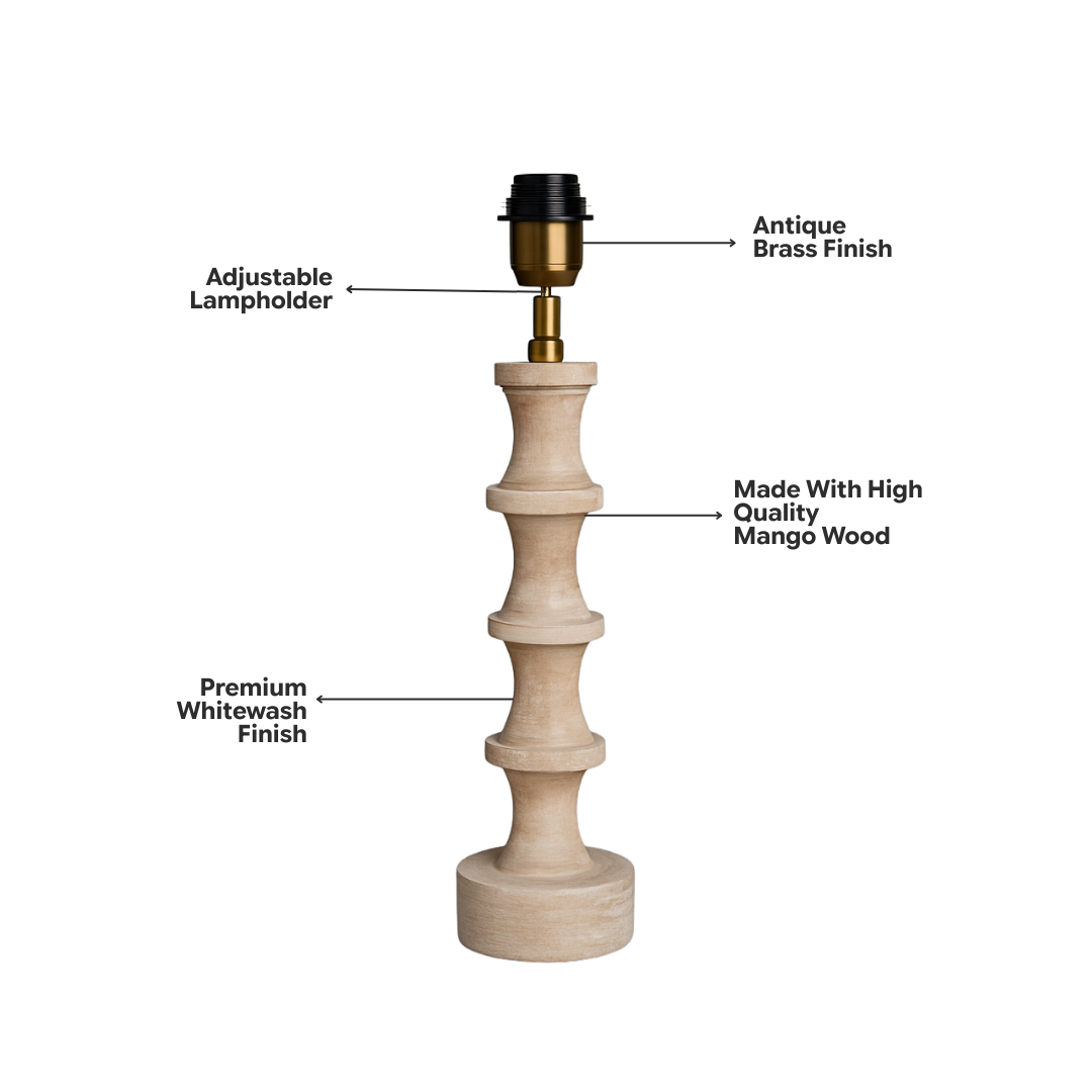 - Base is handcrafted from mango wood and has a light whitewash finish for freshness.