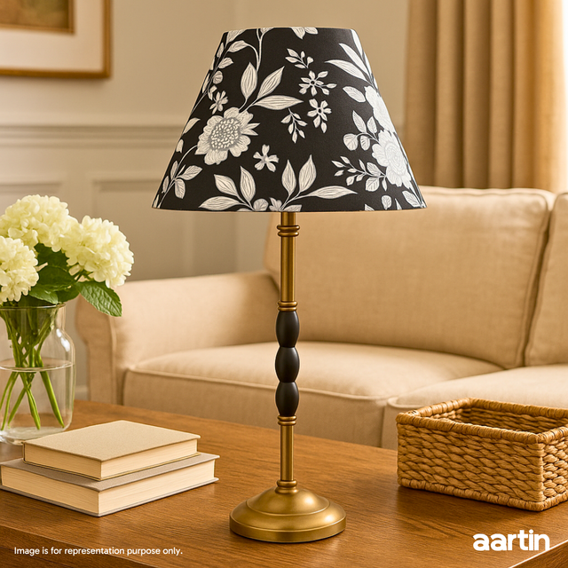 The Ophelia table lamp's got curves, contrast, and loads of character. Its sleek and slender metal stem has an antique brass finish. The bold black powder-coated orbs on them add just the right bit of drama. The look is both modern and glamorous. Best for mid-century, eclectic, or minimal-chic decor styles. It looks fab on console tables, work desks, or nightstands. Pair it with a 30–35 cm empire shade in soft pink ikat, warm beige, or teal. That's the best way to let Ophelia work her quiet magic.