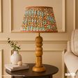 Make lighting fun with our brown and blue ikat lampshade. This cheerful, straight empire shade is bursting with energy, thanks to an attractive diamond print. Adding to its vibrancy are the happy hues of brown and blue. Made from cotton, the fabric is carefully gathered by hand to get a soft, crinkled texture. And the lining of silk on its inner side ensures a soothing glow when you flip the switch.