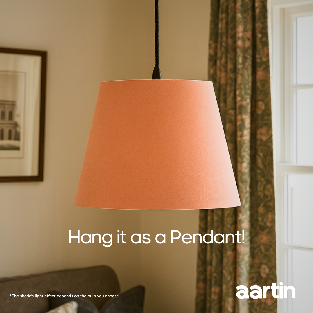 Soft, glowy, and just a little flirty—this Rose Shade in dupion silk is pure elegance with a playful twist. The rosy hue brings warmth without trying too hard, while the crisp, straight empire shape keeps it polished. The natural slubs you see in the silk are just part of its charm - a lovely reminder that real silk is never flat or perfect, and that’s exactly what makes it special. It’s a rolled shade with a sturdy metal frame, lined with cotton for that perfect diffused glow. Handmade in India, it fits beautifully into romantic bedrooms, chic corners, or minimal spaces that need a hint of blush. Whether you hang it as a pendant or top off a table lamp, this one’s here to charm—softly, but unmistakably.