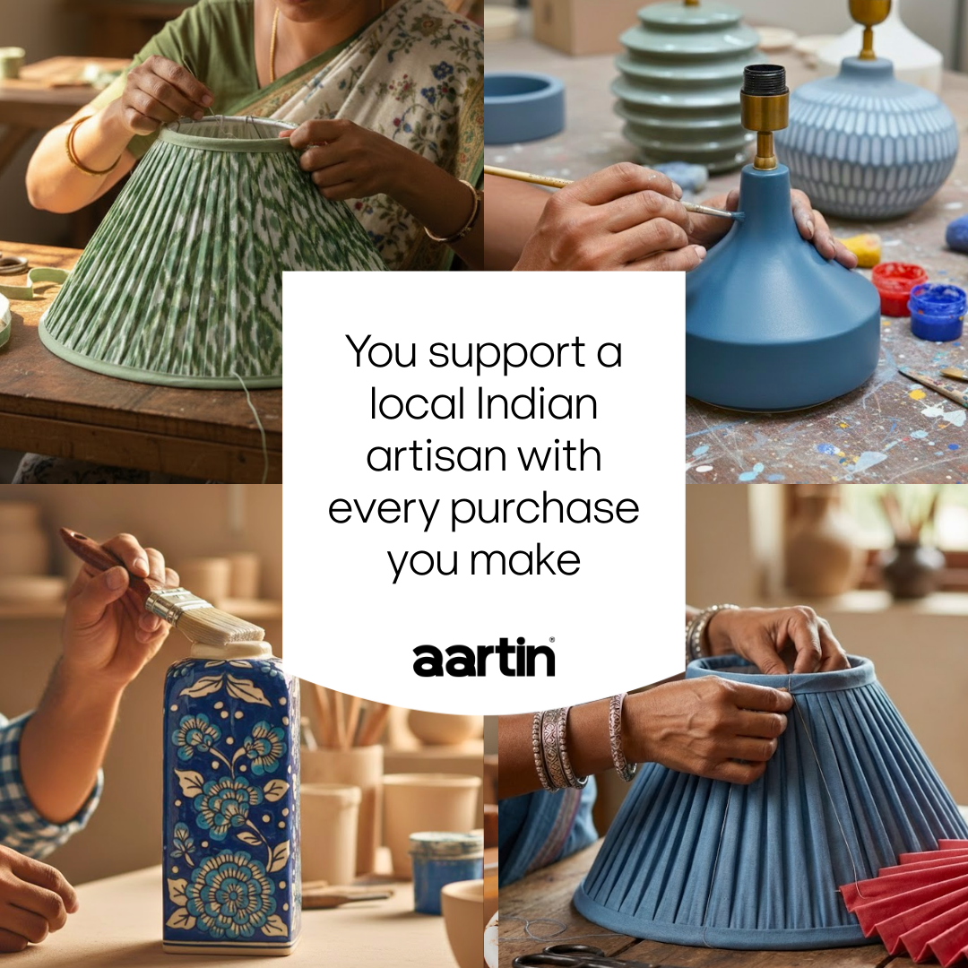 AARTIN Willow Ceramic Table Lamp with Ivory Silk Gathered Lampshade