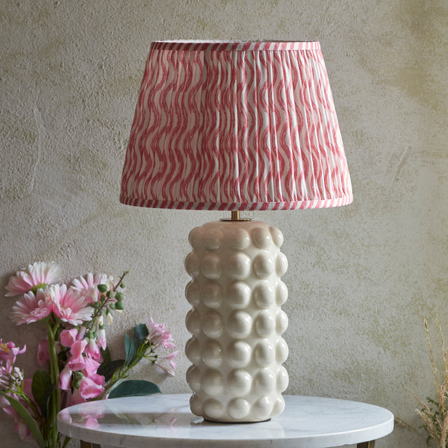 Add a touch of playfulness and elegance to your interiors with the Bobble & Ripple table lamp. Combining vintage charm with a modern twist, this ceramic lamp is paired with a vibrant coral pink shade, creating the perfect statement piece for any space.