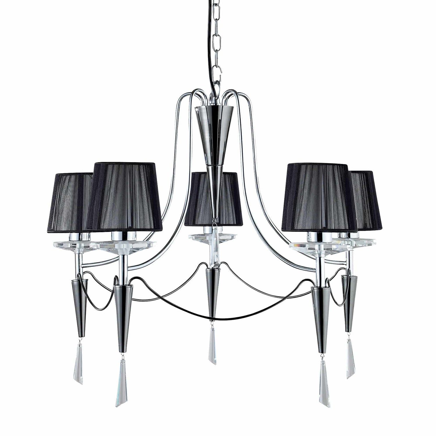 Duchess 5Lt Ceiling Pendant - Chrome/Crystal & Black Shades