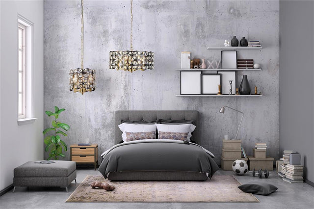 Iris 5Lt Pendant - Black Metal, Crystal & Brass