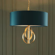 Lena 3Lt Pendant Ceiling Light Antique Gold Leaf & Teal Satin Fabric