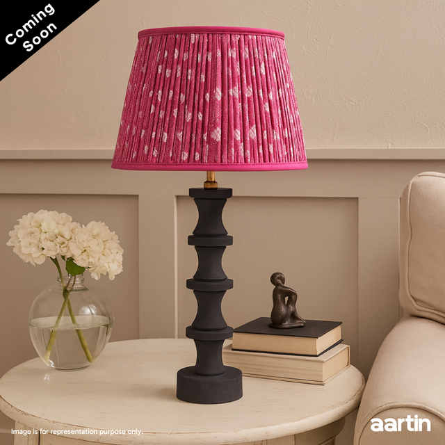 Want to add a bold touch to your room? Meet the Nova table lamp base in matte black. Made of mango wood, its playful, stacked design brings a modern edge to any space. The deep black tone works well with bright or simple lampshades, making it easy to style. Great for side tables, study desks or living room corners. For the right balance, pair it with a shade that’s around 35–40 cm wide.