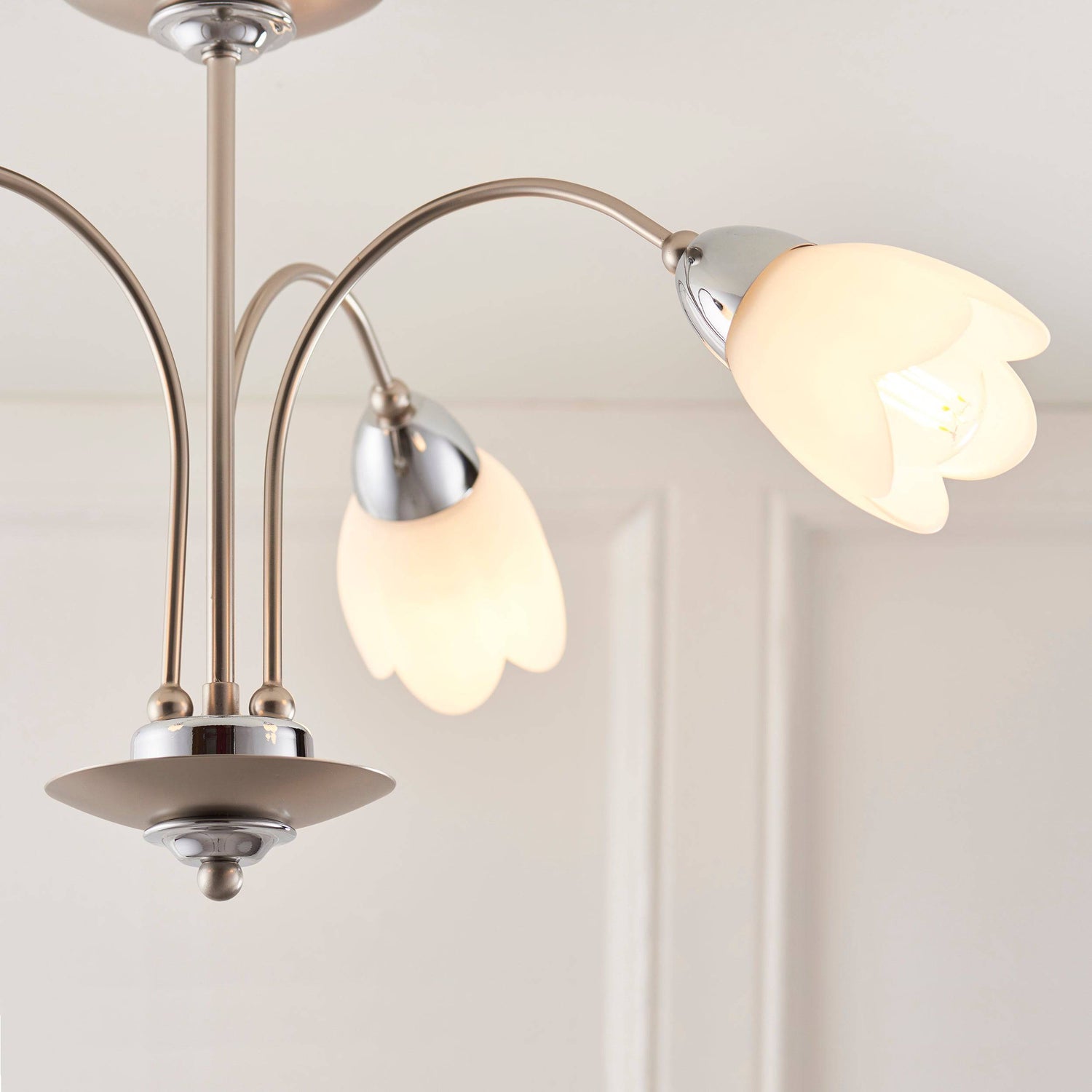 Petal 3-Light Semi Flush Ceiling Light Chrome
