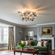 The Searchlight 3Lt Half Flush Curls Acrylic light fixture combines modern elegance with a playful design. Featuring curling acrylic arms, this fixture casts a warm glow, making it a stylish addition to any room while providing ample illumination for a cozy atmosphere.