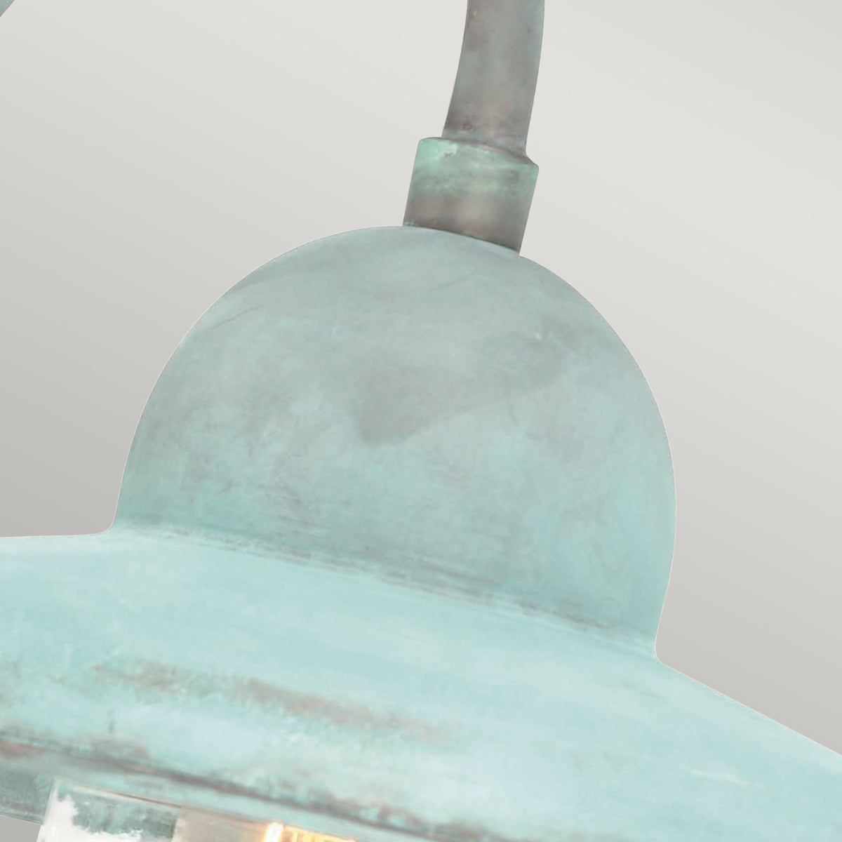 The Sheldon Outdoor Wall Light in Verdi offers a stunning blend of sophistication and durability, perfect for enhancing your outdoor areas. Made from solid brass and glass, this lantern features a rich green finish that adds character. It accommodates an E27 bulb, providing warm illumination for pathways or patios.