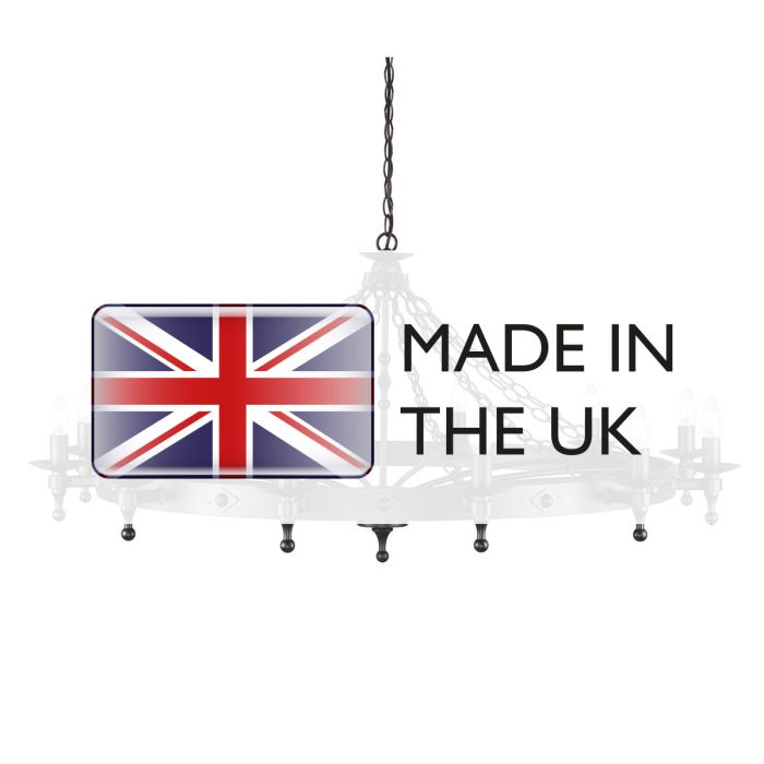 Make a bold statement with the Warwick 12-Light Chandelier, a stunning centerpiece that captures the grandeur of medieval design. Handcrafted by Elstead, this chandelier replicates the robust beauty of wrought iron fittings from the past, adding historic elegance to large spaces with its intricate craftsmanship and timeless charm.